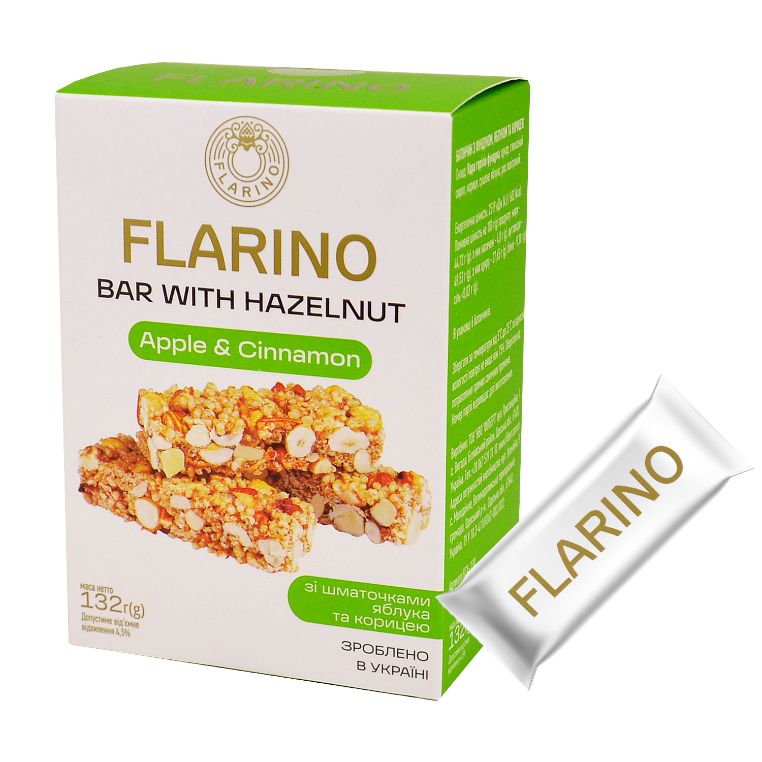 Батончик Flarino с фундуком, яблоками и корицей 132 г (6 шт)