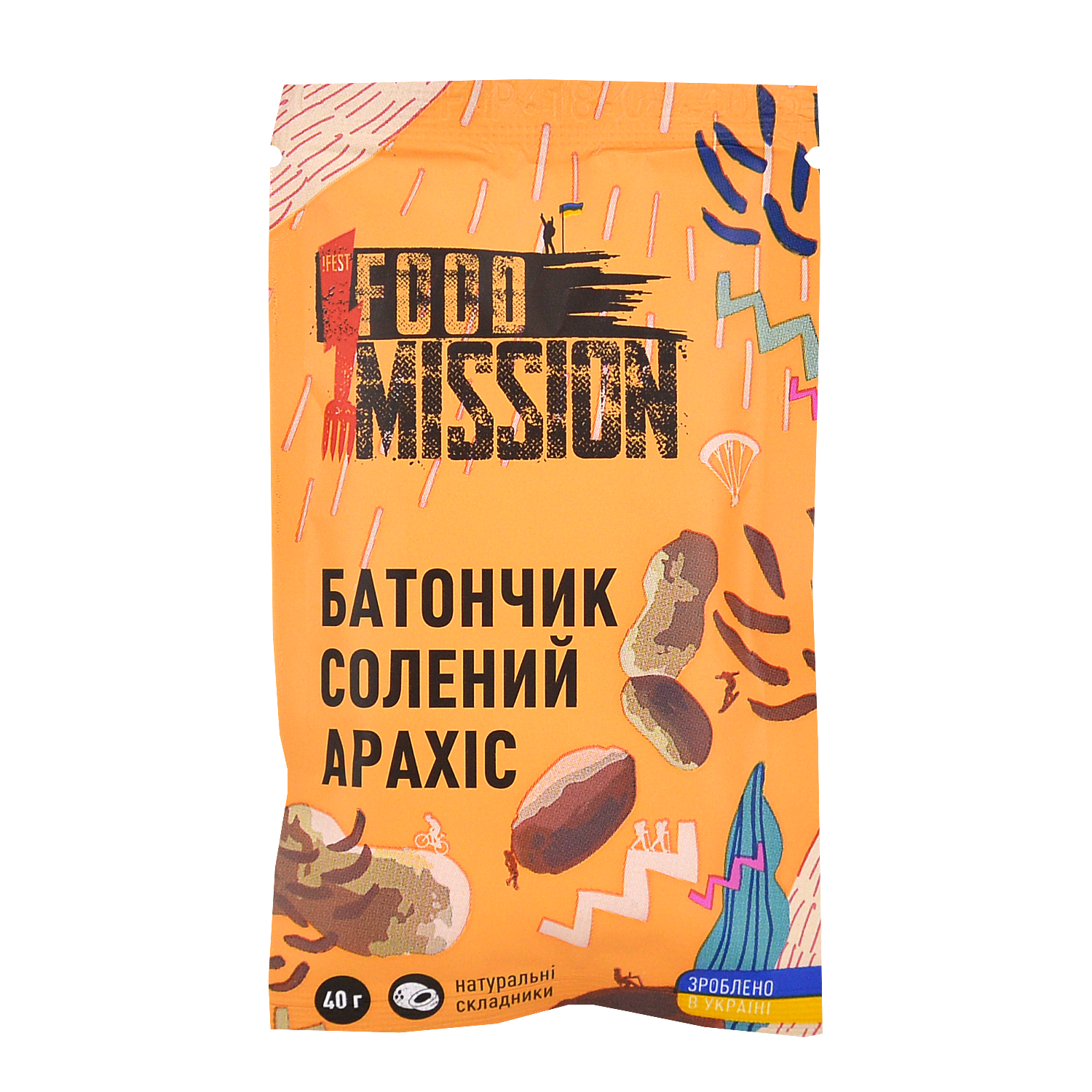 Купить недорого батончик Food Mission Солёный Арахис 40 г можно в шоурумах в Киеве, Одессе и Ровно или заказать с доставкой по всей Украине.