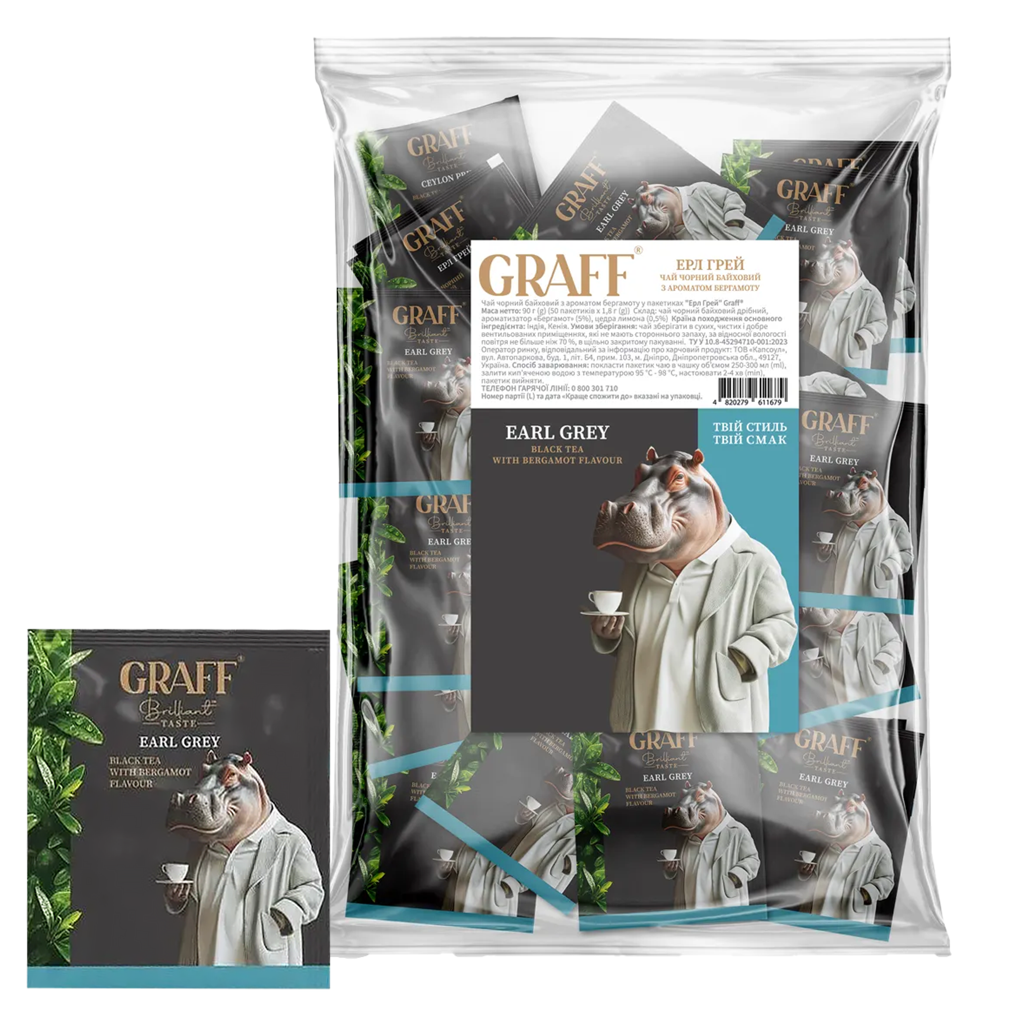 Чай чёрный байховый Earl Grey с ароматом бергамота Graff 50 шт х 1.8 г