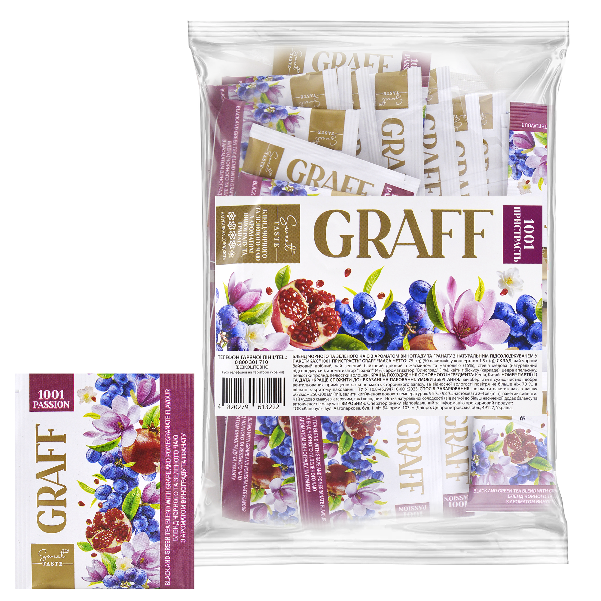 Чёрный чай с зелёным с ароматом винограда и граната «1001 страсть» Graff 50шт × 1,5г