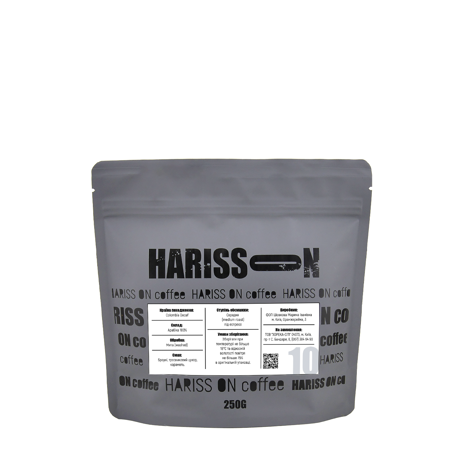 Купить недорого кофе молотый HARISS ON №10 Колумбия 100% Арабика без кофеина 250 г можно с доставкой по всей Украине, а также посмотреть, забрать или оформить заказ в наших шоурумах в Киеве, Одессе и Ровно.