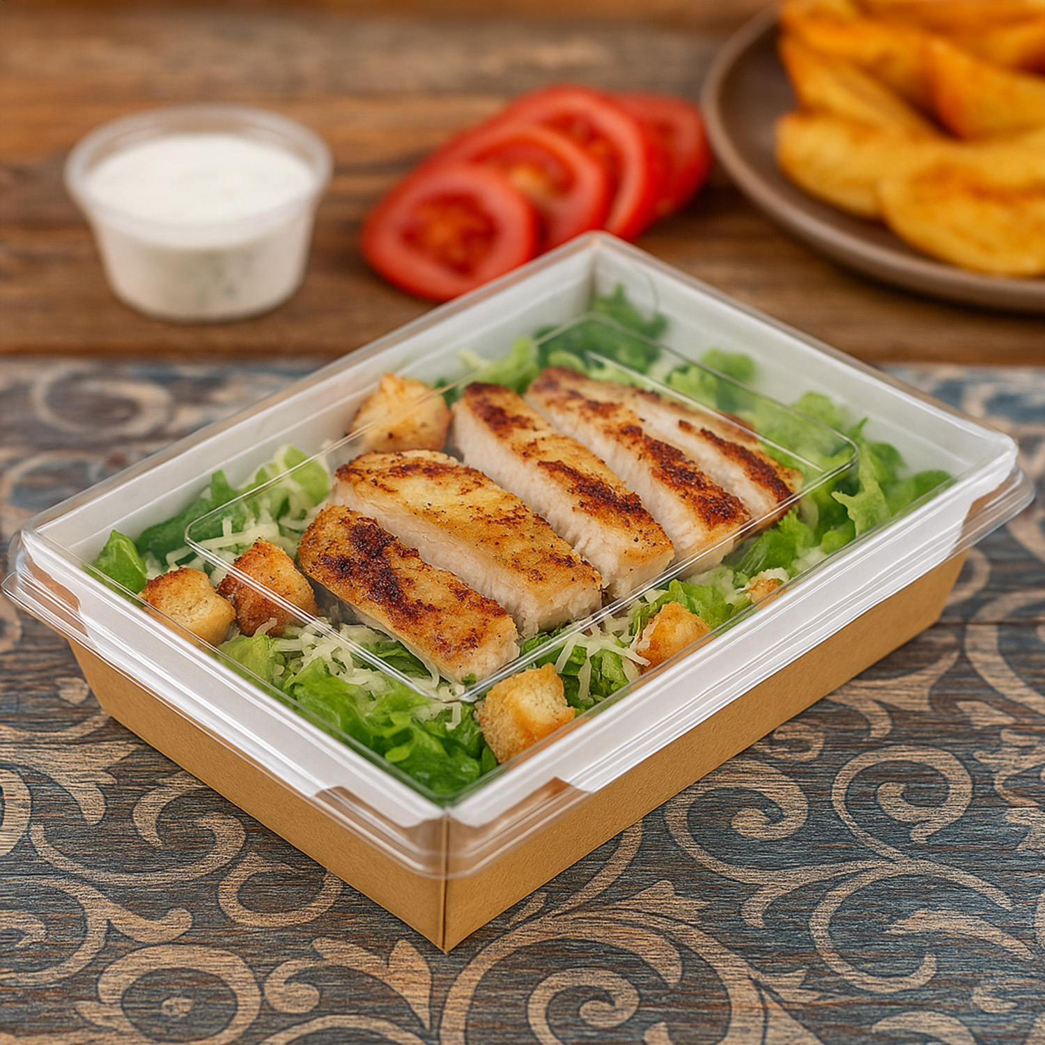 Матовая поверхность крафта придаёт упаковке естественный и современный вид, что идеально соответствует стилю заведений HoReCa. Такой контейнер подойдёт для кафе, ресторанов, служб доставки, кейтеринга и фуд-кортов.
