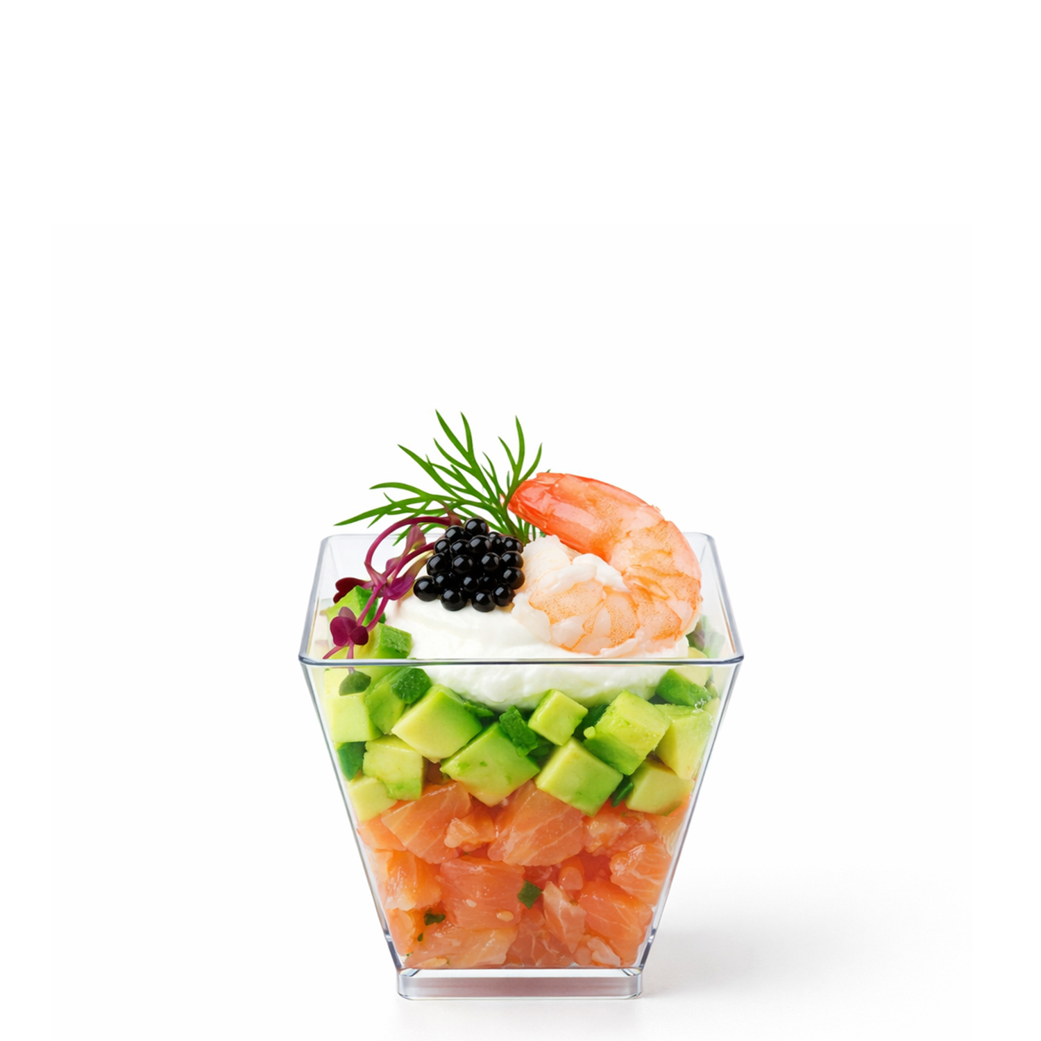 Квадратная форма придает современный вид, а объем 65 мл идеально подходит для порционных десертов: муссов, ягодных миксов, желе или шоколадных угощений. Такие креманки отлично сочетаются с сиропами, которые помогут подчеркнуть вкус блюд и добавить насыщенные ароматы. Компактные размеры делают их удобными для дегустаций и мини-фуршетов.