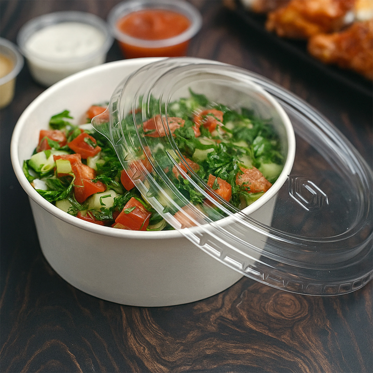 Крышка для салатника 150 мм 50 шт — практичное решение для надёжного закрывания бумажных салатников диаметром 150 мм. Она обеспечивает удобство при транспортировке и хранении блюд, предотвращает случайное открывание и протекания, а также помогает сохранить свежесть еды до момента подачи.