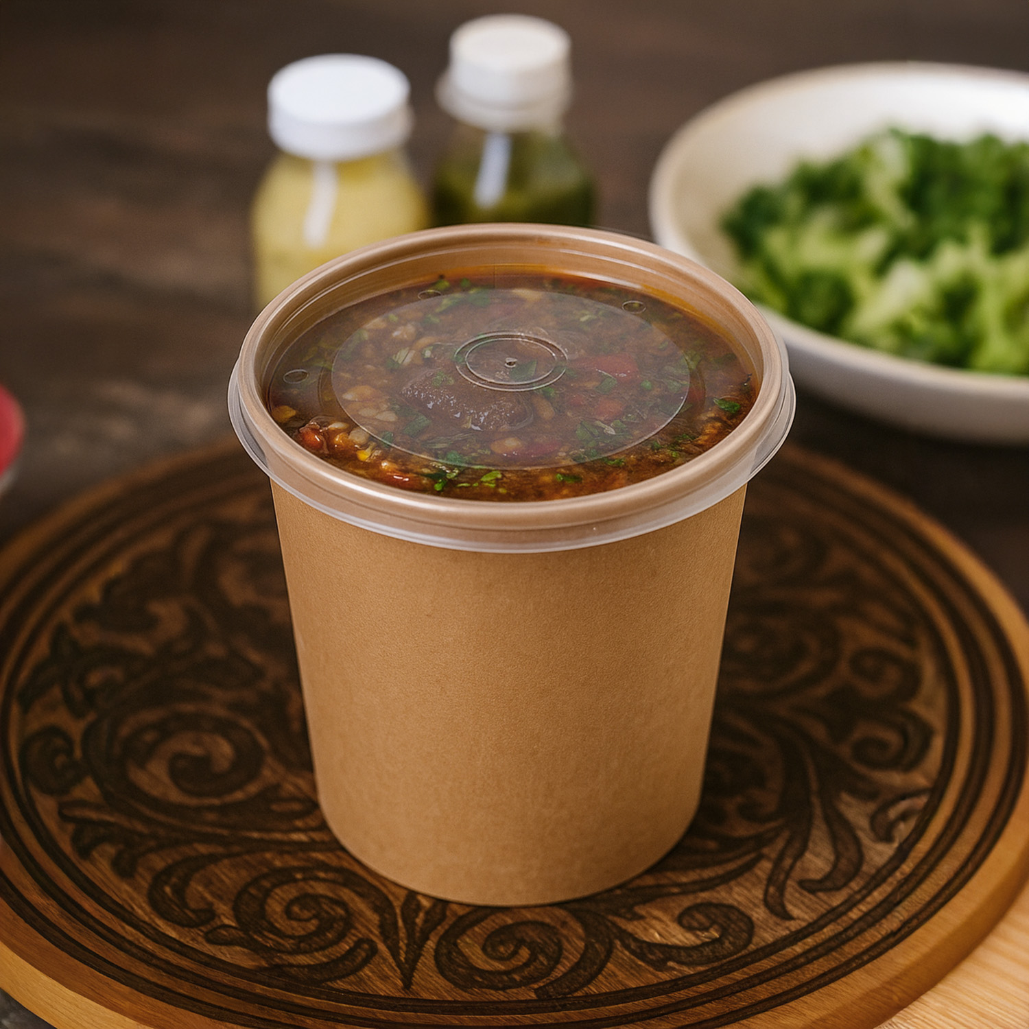 На нашем сайте можно купить крышку для супника крафт/белый D-97 мм 450 мл оптом и в розницу. Она полностью совместима с одноимённым супником, создавая функциональный и стильный комплект. Рекомендуем также приобрести одноразовые приборы или бумажные салфетки для удобной подачи первых блюд.