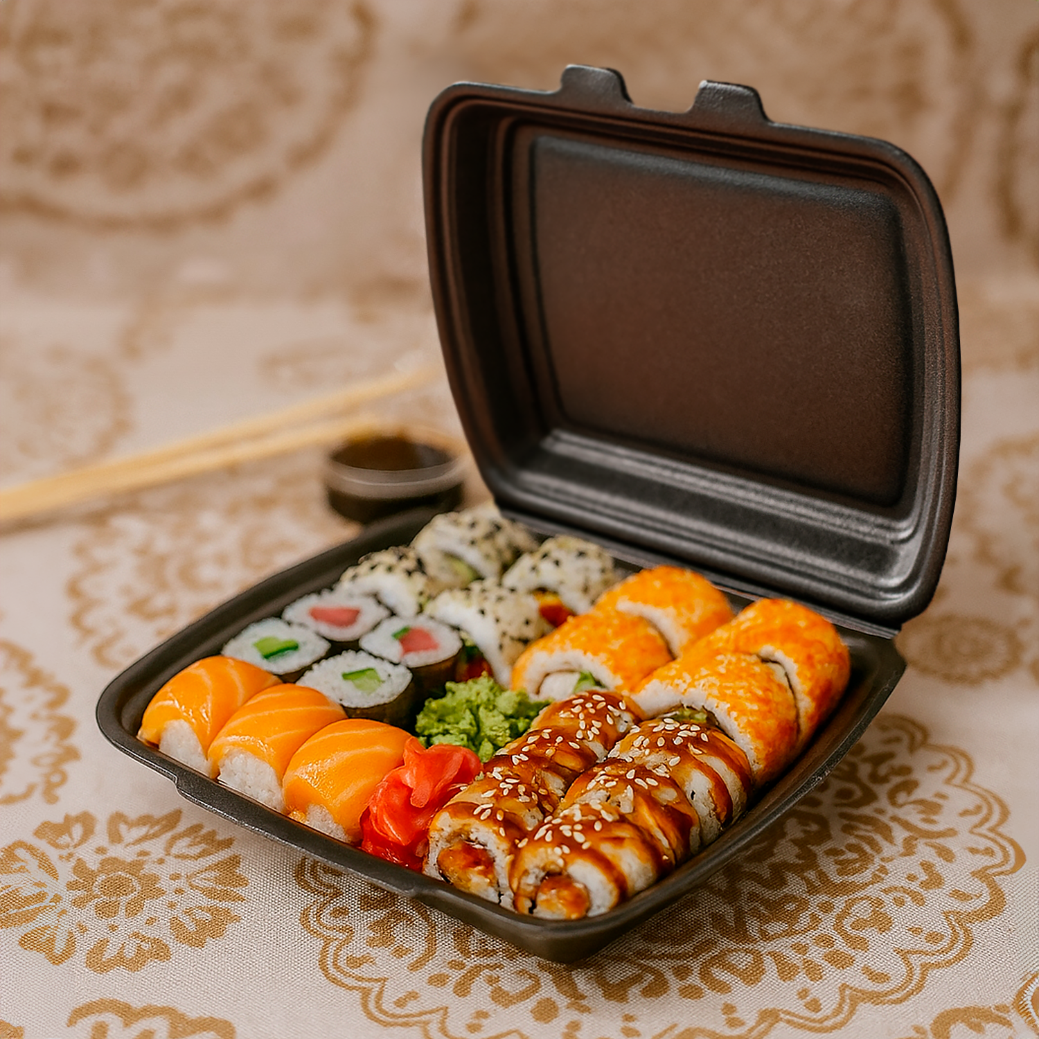 Ланч-боксы - это очень удобный, практичный и при этом недорогой вариант упаковки для подачи еды "на вынос" или на доставку. Контейнер изготовлен из вспененного полистирола, который позволяет долгое время сохранять температуру вашего блюда - горячего или холодного. Это несомненное преимущество выделит вас среди конкурентных заведений и служб доставки. Корпус ланч-бокса надёжно защищён для транспортировки, а скруглённые края контейнера не позволят вам пораниться при использовании. Ланч-бокс имеет удобную систему закрытия, однако, если в вашем блюде обильное количество соуса или других жидких компонентов, рекомендуем дополнительно обернуть ланч-бокс в пищевую плёнку для доставки во избежание проливания. Вы можете купить ланч-бокс НР-1 чёрный 250х210х70 мм для хранения и транспортировки еды. Разогревать еду в контейнере в микроволновке запрещено. Также вы найдёте в нашем ассортименте другие ланч-боксы с одной, двумя или тремя секциями.