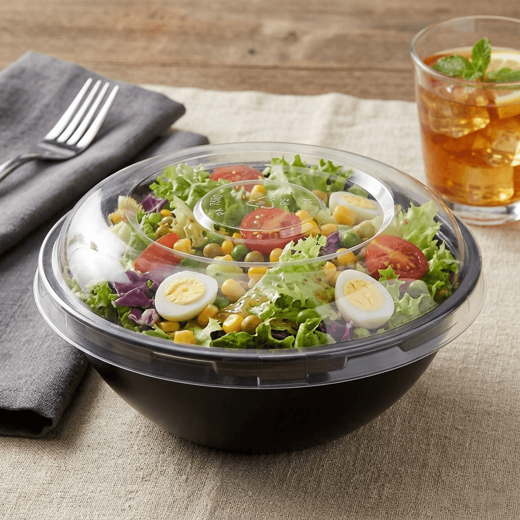 Пластиковый салатник - это практичное решение для упаковки ваших салатов. Он надёжно защищает содержимое от внешнего воздействия. Вы можете купить салатник чёрный 500 мл для подачи, хранения и транспортировки салатов, кондитерских изделий, ягод и т.д. Контейнер выглядит очень стильно в чёрном цвете с контрастной прозрачной крышкой. Крышка плотно закрывает ёмкость, не давая салатнику непроизвольно открыться в дороге. Также вы найдёте у нас другие салатники.