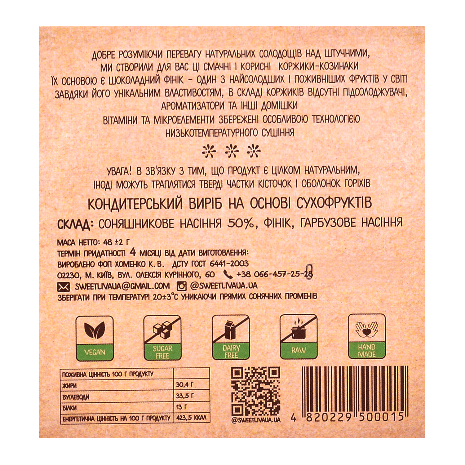 - Состав: семечки подсолнуха 50%, финик, семечки тыквы.