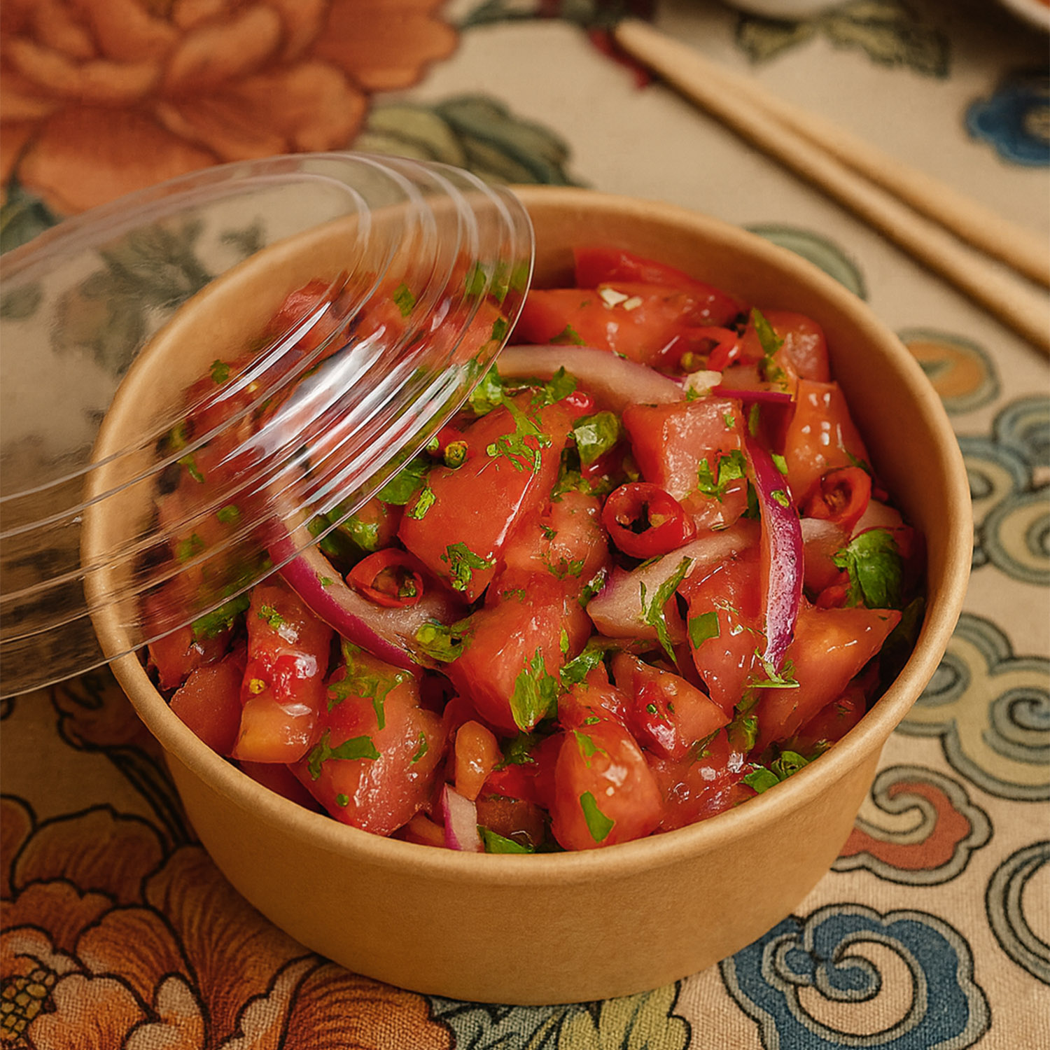 Бумажный салатник объёмом 550 мл — это практичное решение для подачи, хранения и транспортировки холодных и горячих блюд. Он изготовлен из прочного крафт-картона, который обладает жиро- и влагостойкими свойствами, не деформируется при нагревании и не впитывает посторонние запахи. Такой контейнер отлично подходит для салатов, боулов, десертов или гарниров в заведениях HoReCa, кафе, службах доставки и на фудкортах.