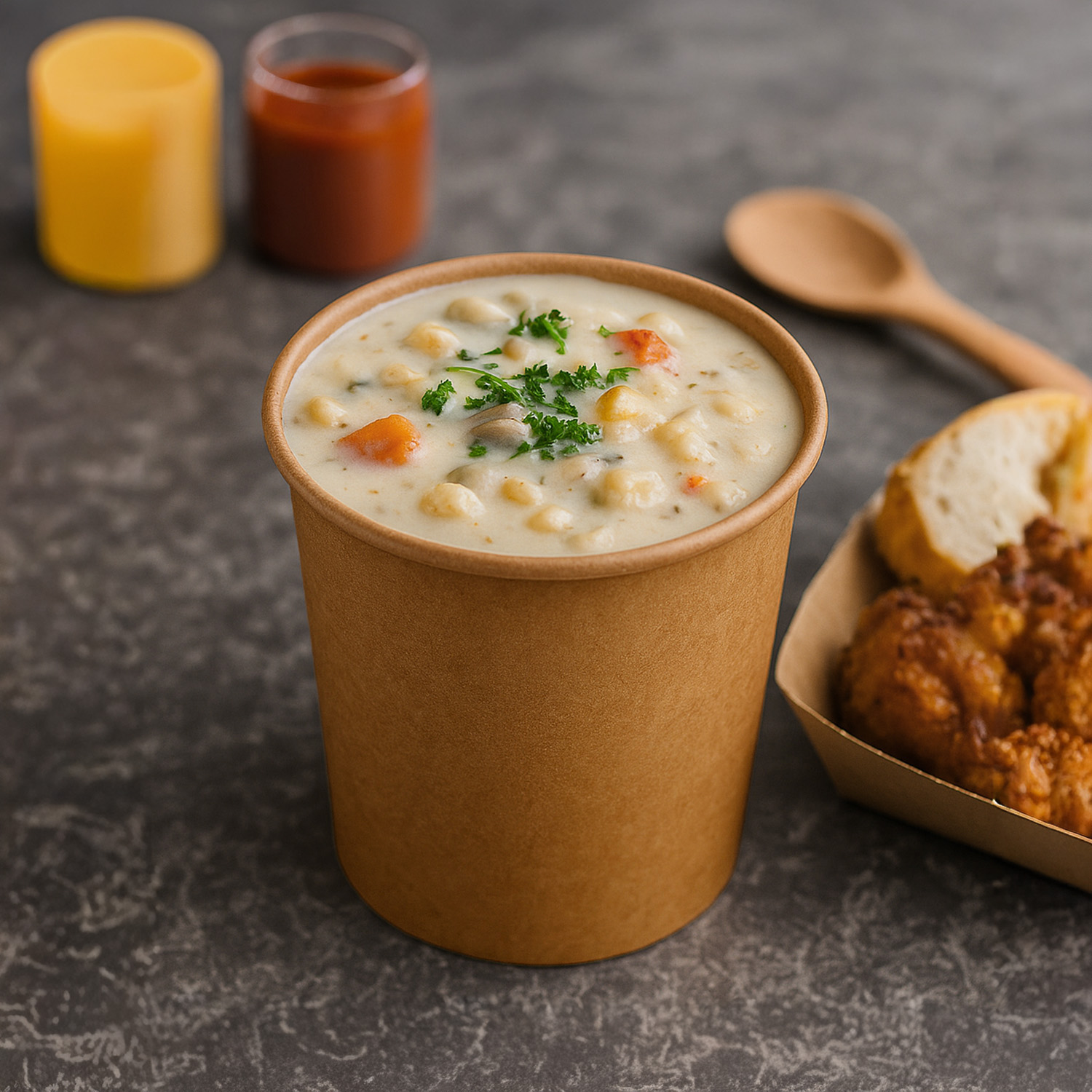На нашем сайте можно купить супник крафт D-97 мм 450 мл оптом и в розницу. Он идеально подходит для заведений HoReCa, фуд-кортов и выездных мероприятий. Рекомендуем также приобрести тарелки или миски для сервировки и коробки для еды на вынос для комплексного оформления заказа.