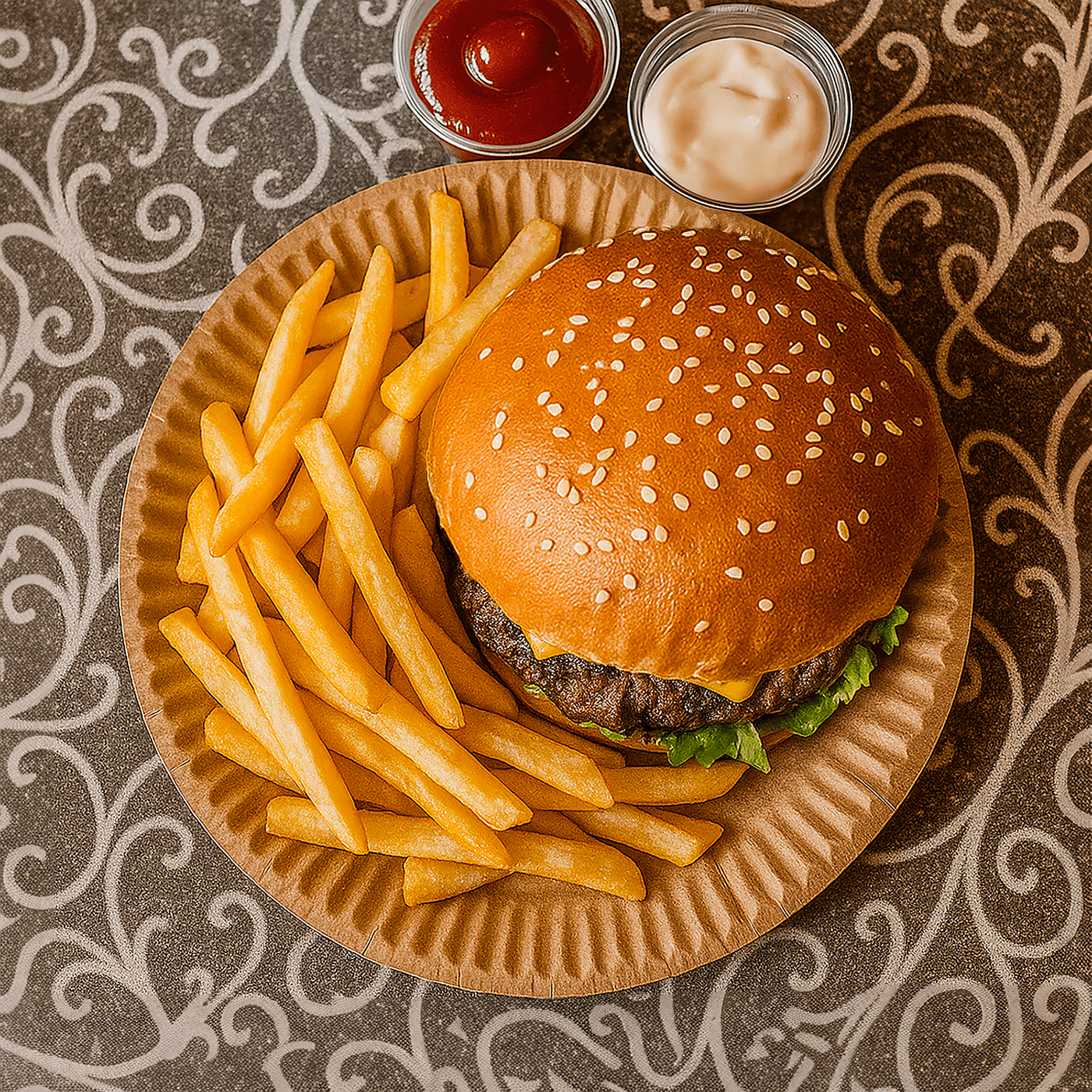 Диаметр 180 мм делает эту тарелку удобной для подачи закусок, десертов, салатов или гарниров. Натуральный крафтовый дизайн создаёт ощущение экологичности и современности, подчёркивая стиль подачи в вашем заведении.
