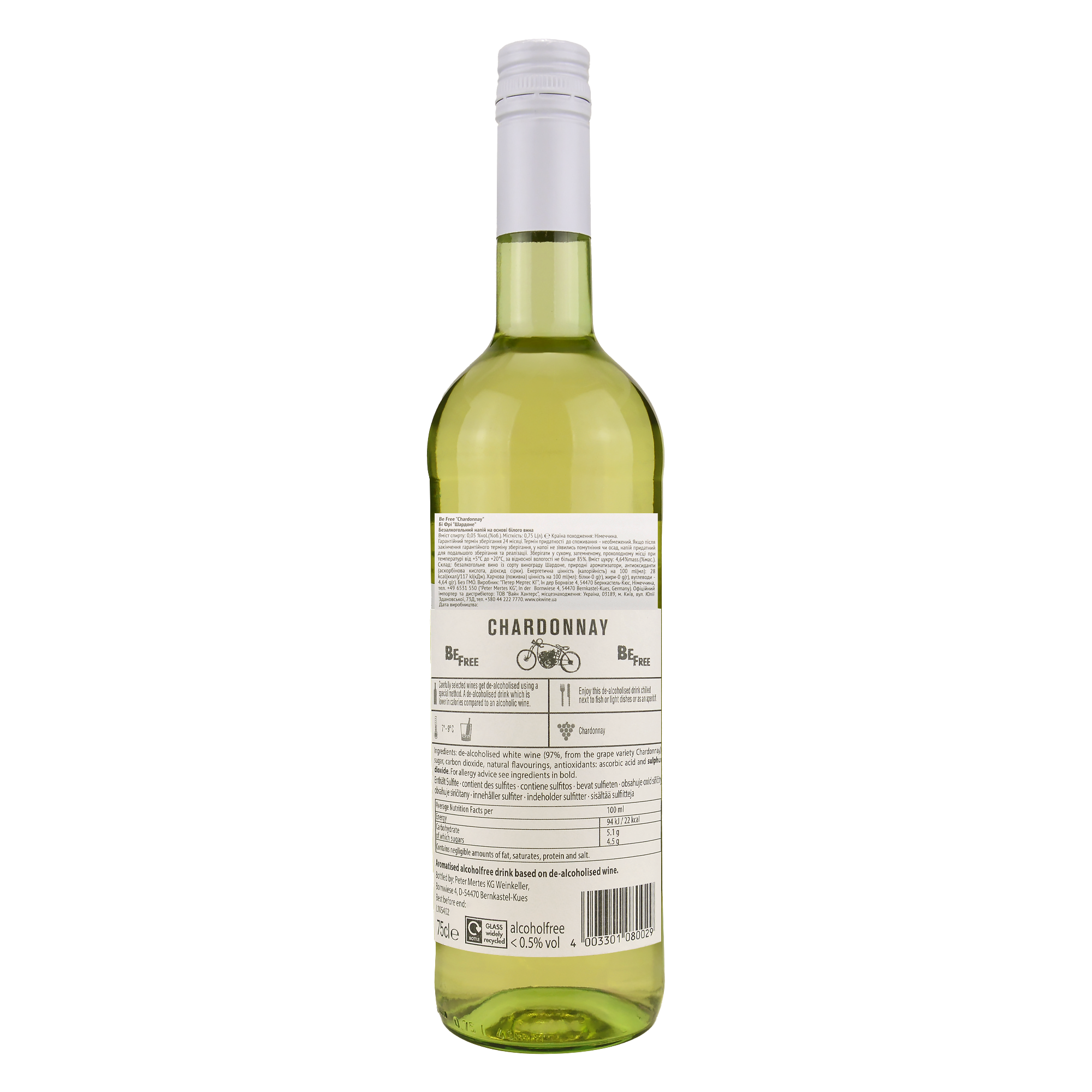 Безалкогольне біле вино Бі Фрі Шардоне / Be Free Chardonnay Peter Mertes 750 мл