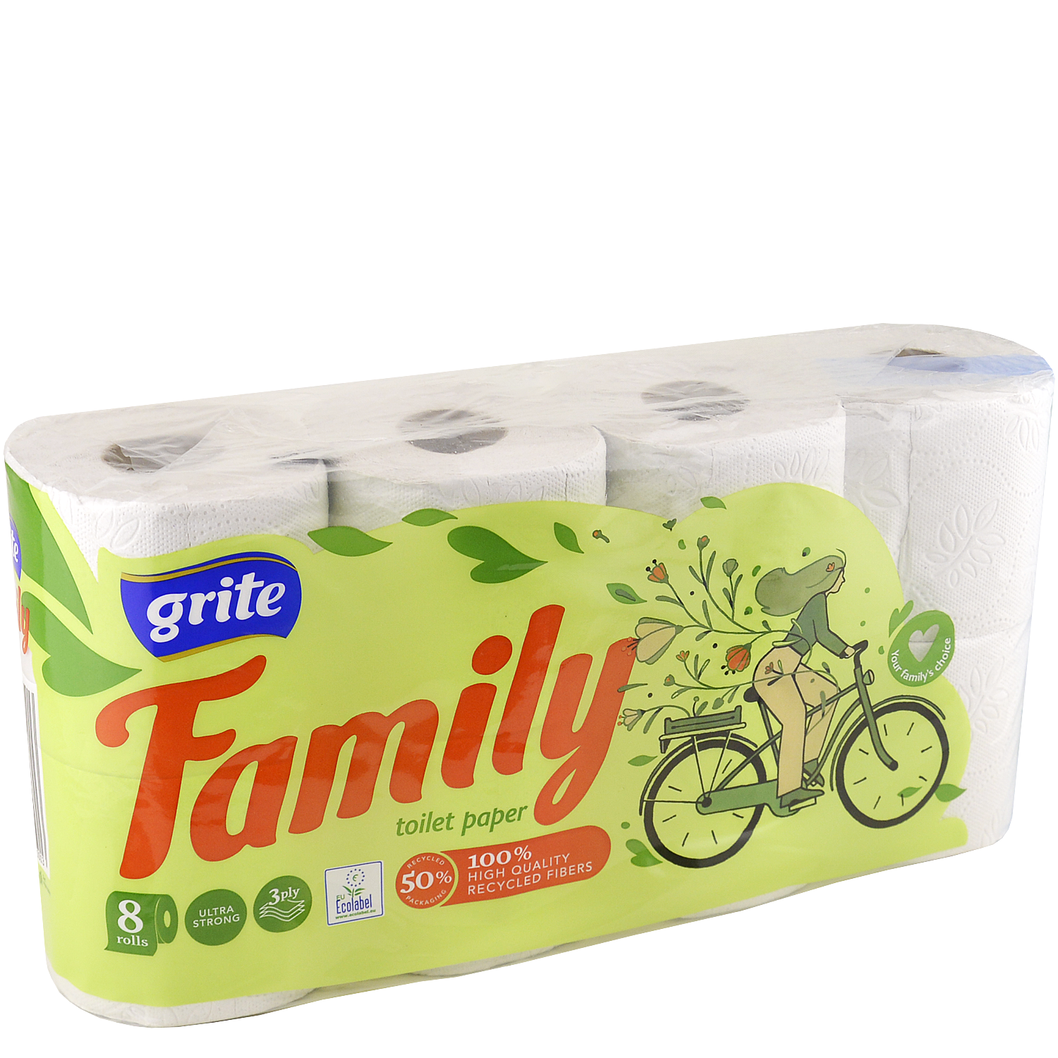 Туалетний папір Grite Family стане ідеальним вибором для облаштування домашніх або громадських санвузлів. Тришарова структура забезпечує відмінну міцність і комфорт, а компактний розмір рулону дозволяє легко інтегрувати його в будь-які умови.