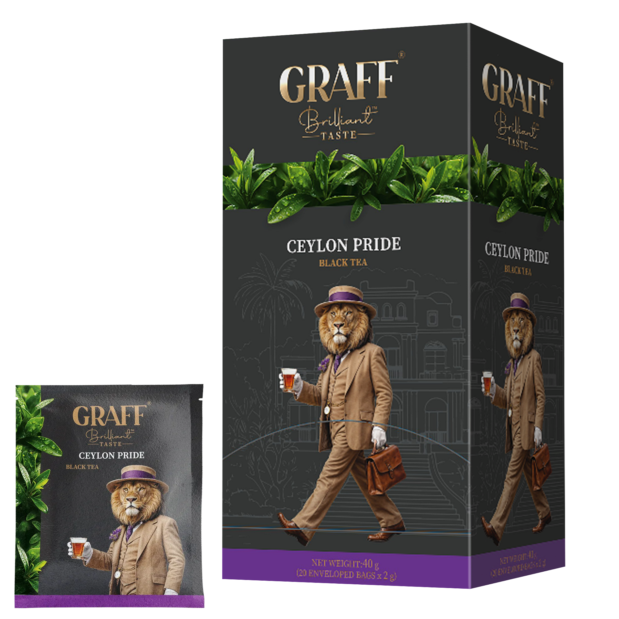 Чай чорний байховий Ceylon pride Graff 20 шт х 2 г — це вишуканий напій, який уособлює класичну елегантність та багатство традиційного цейлонського смаку. Його насичений, оксамитовий смак у поєднанні з глибоким ароматом створюють справжнє королівське враження.