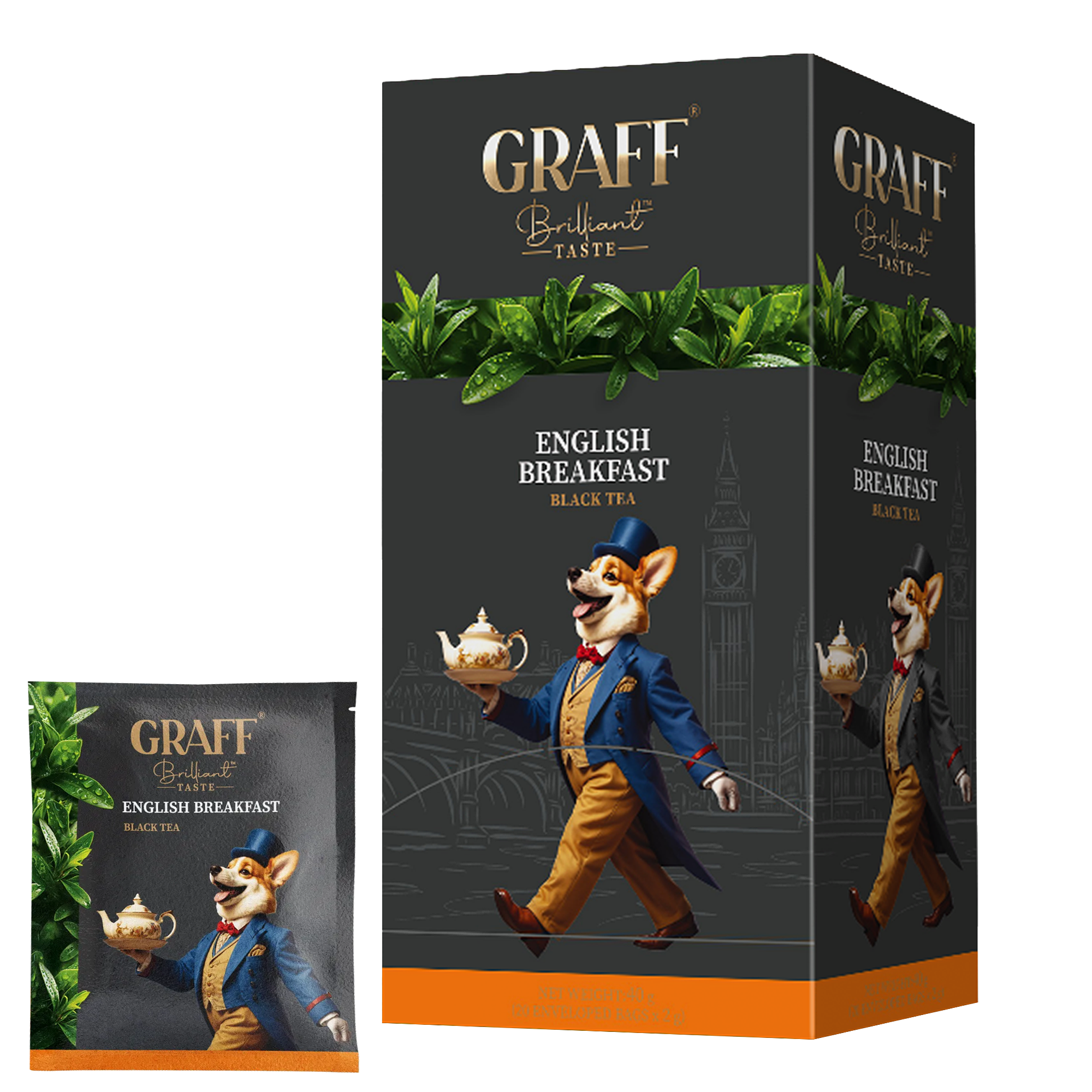 Чай чорний байховий English Breakfast Graff 20 шт х 2 г — це втілення багатовікової англійської традиції та неповторного смаку, який пробуджує тіло і наповнює ранок енергією. Завдяки унікальній суміші відбірних сортів чорного чаю з Індії, Кенії та Шрі-Ланки напій має глибокий, насичений смак із м’якими та збалансованими нотками.
