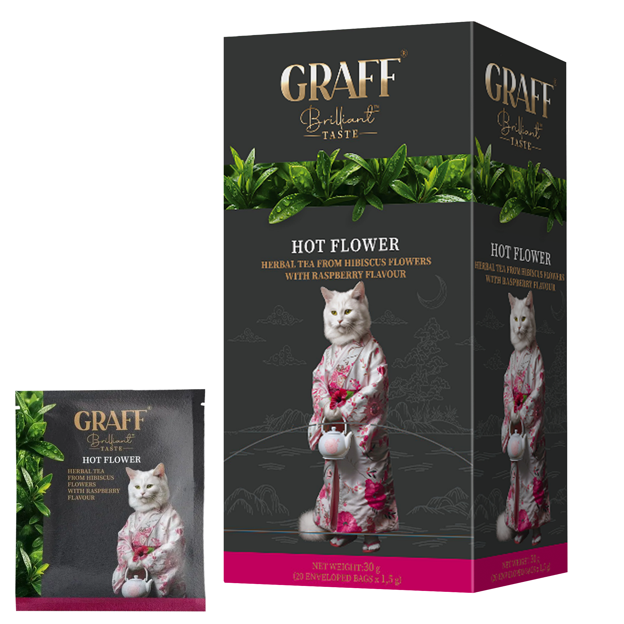 Чай каркаде Hot flower з ароматом малини Graff 20 шт х 1.5 г