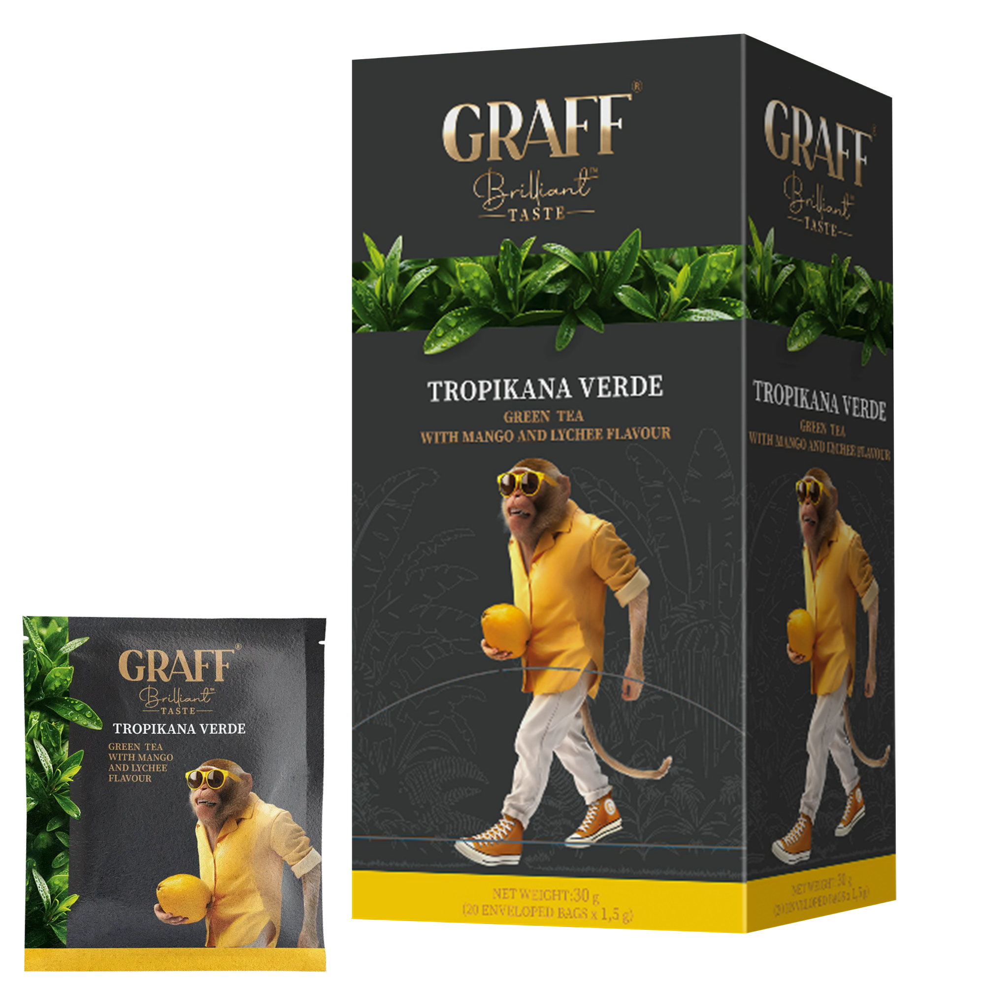 Чай зелений байховий Tropicana verde з ароматом манго і лічі Graff 20 шт х 1.5 г