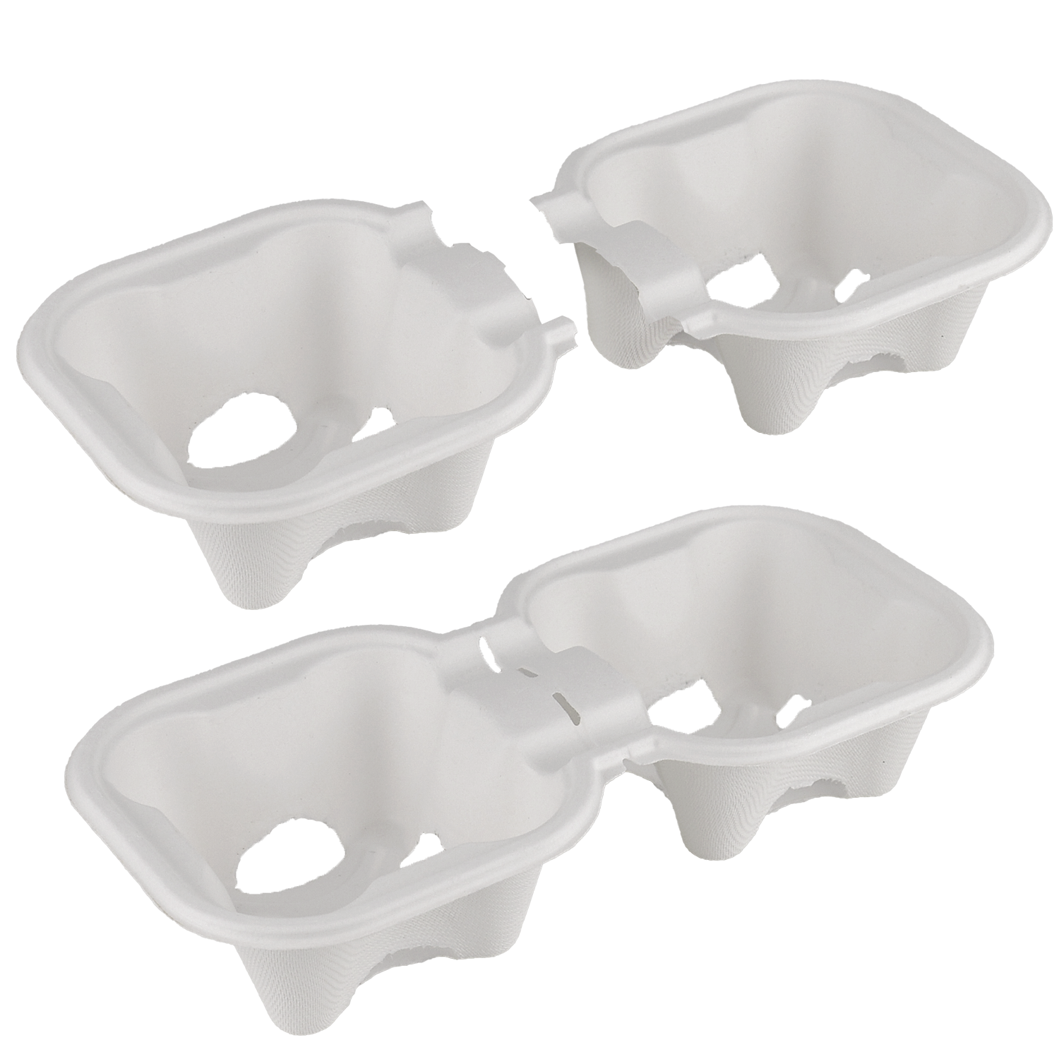Холдер для стаканів на 2 секції — практичне та екологічне рішення для зручного перенесення гарячих або холодних напоїв. Виготовлений з пресованої целюлози, він відзначається міцністю, стійкістю до деформацій та є безпечним для контакту з харчовими продуктами. Матеріал є повністю біорозкладним, що робить цей холдер чудовим вибором для тих, хто піклується про довкілля.