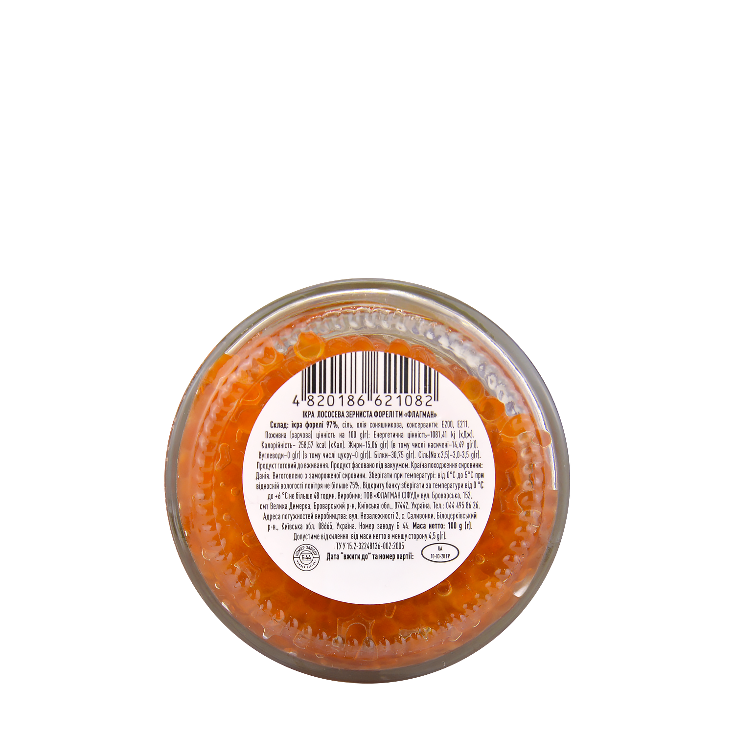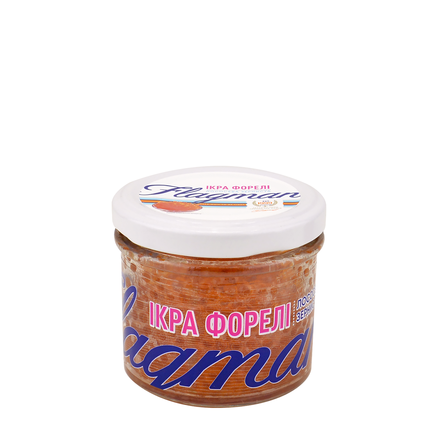 Купити недорого ікру червону форелі Flagman 100 г можна з доставкою по всій Україні, а також переглянути, забрати чи оформити замовлення у наших шоурумах у Києві, Одесі та Рівному.