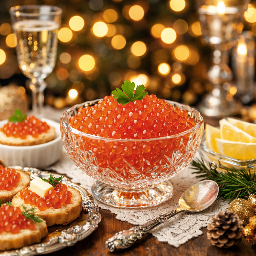 Ікра виготовлена із замороженої сировини, що дозволяє стабільно зберігати якість і смакові властивості продукту. Вона зручна для подачі у холодних закусках, на канапках, тарталетках або як окремий елемент фуршетного столу. Формат 100 г оптимальний для точного контролю порцій і зменшення залишків у роботі кухні.
