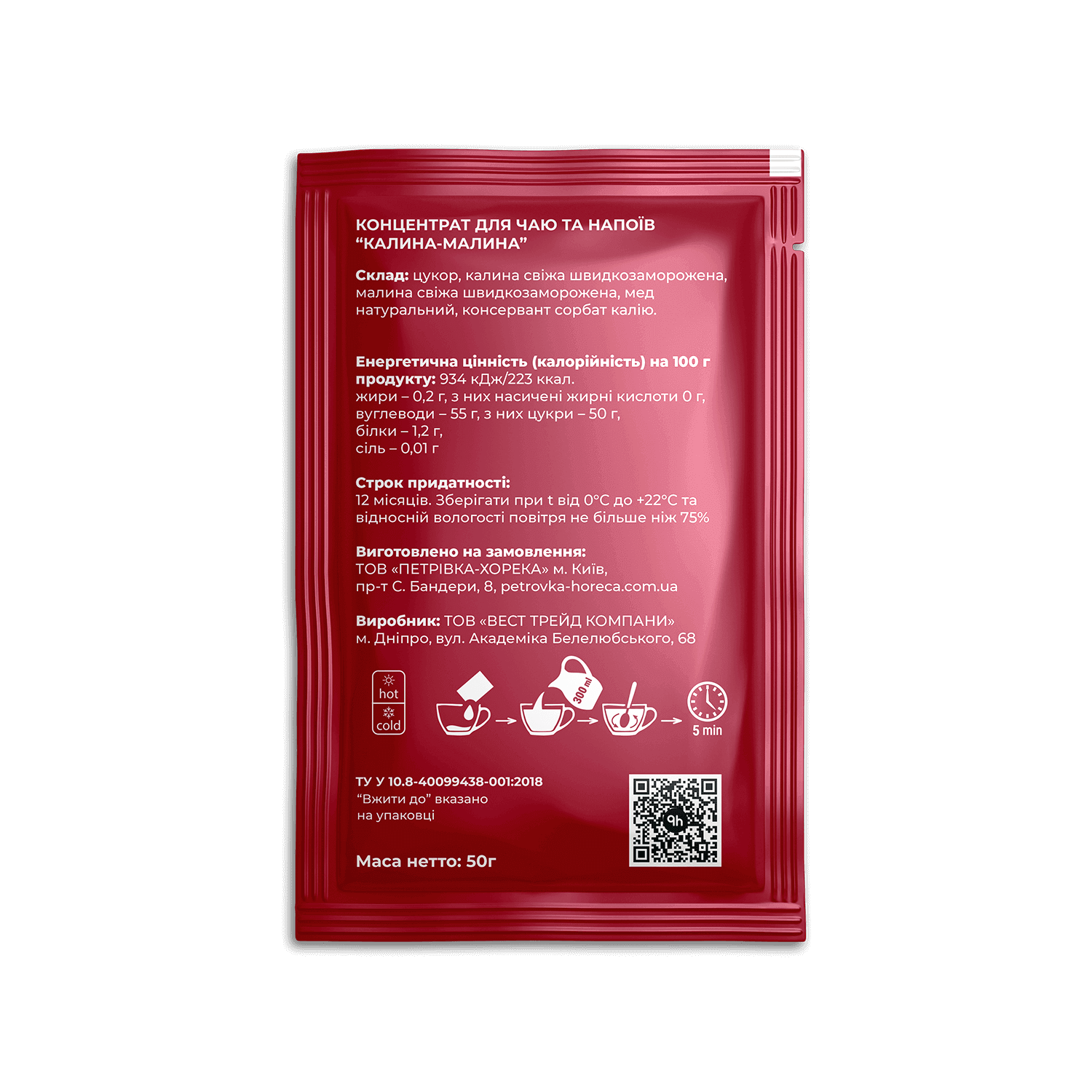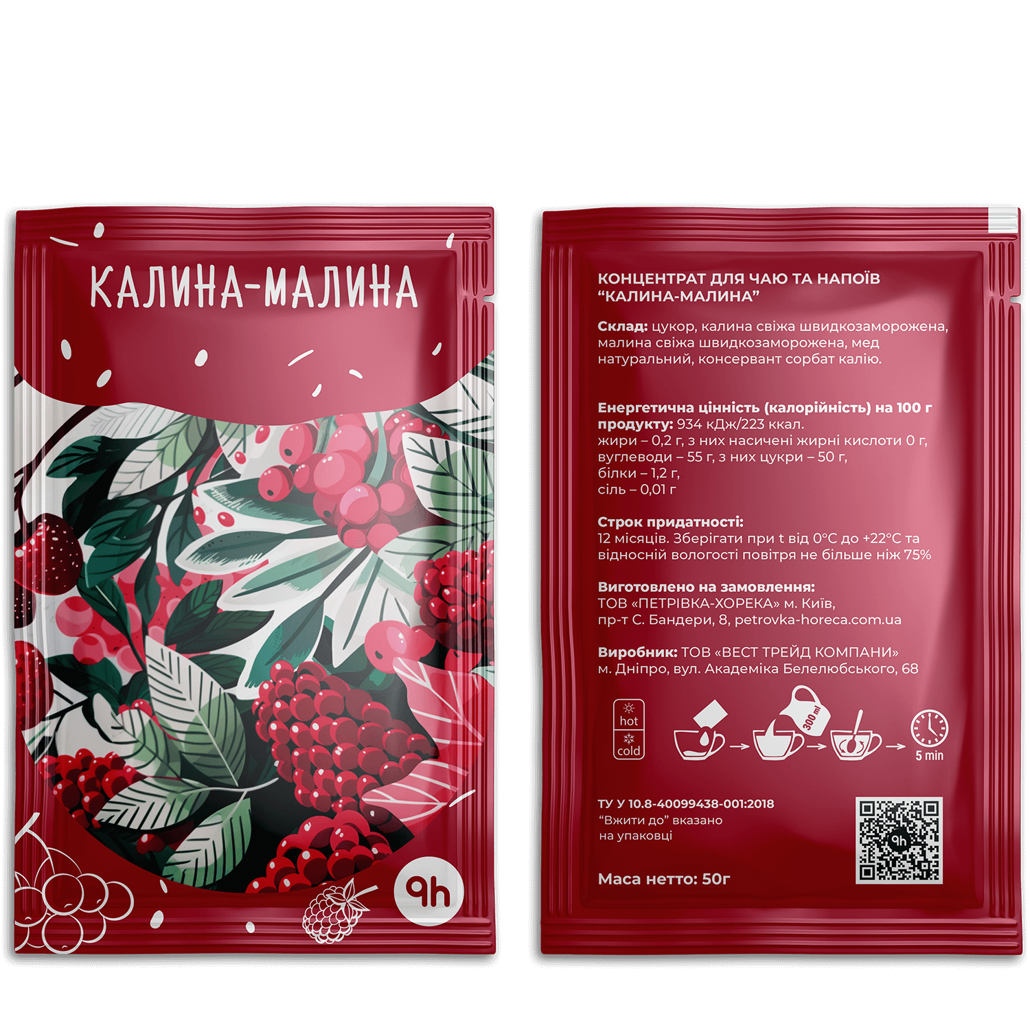 - Склад: цукор, калина свіжа швидкозаморожена, малина свіжа швидкозаморожена, мед натуральний, консервант сорбат калію.