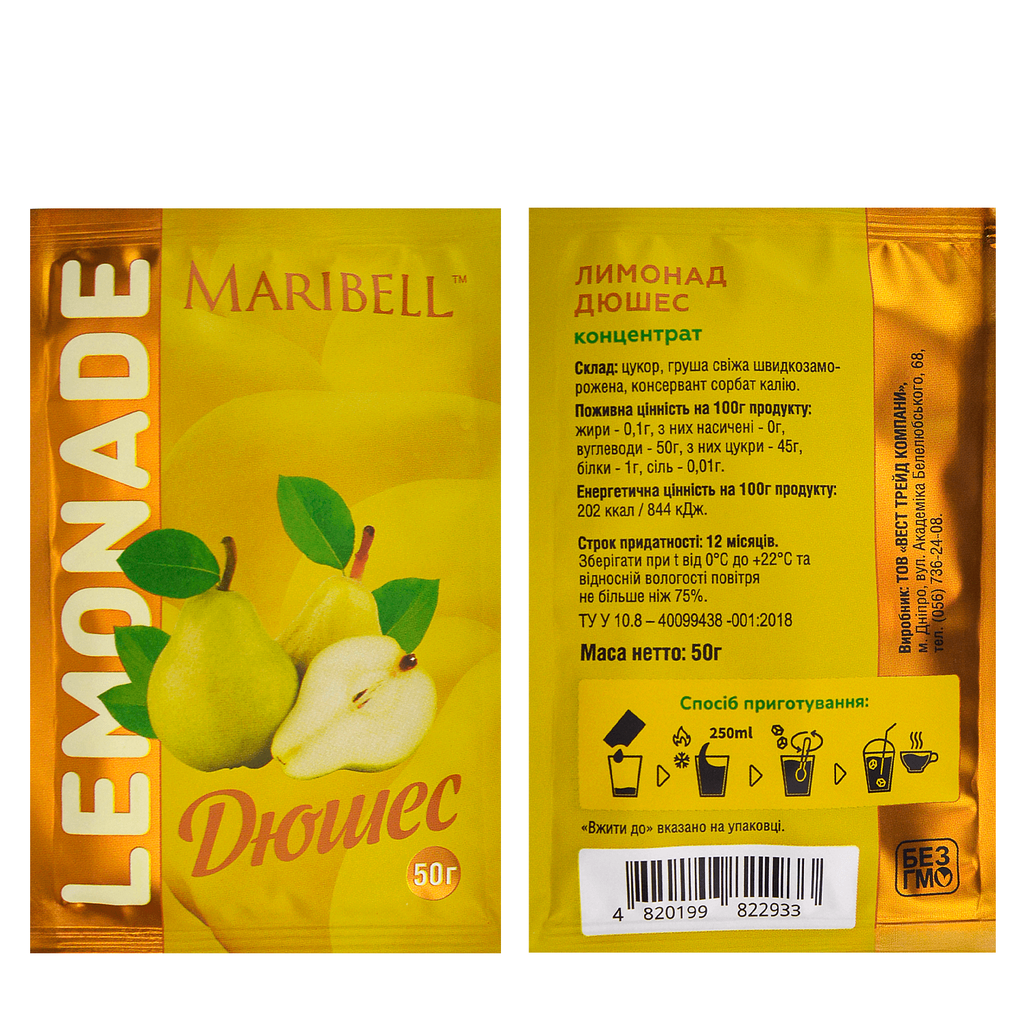 Купити лимонад MARIBELL концентрат — Дюшес 50г 10шт можна оптом і вроздріб у наших шоурумах у Києві, Одесі та Рівному або замовити доставку по всій Україні.
