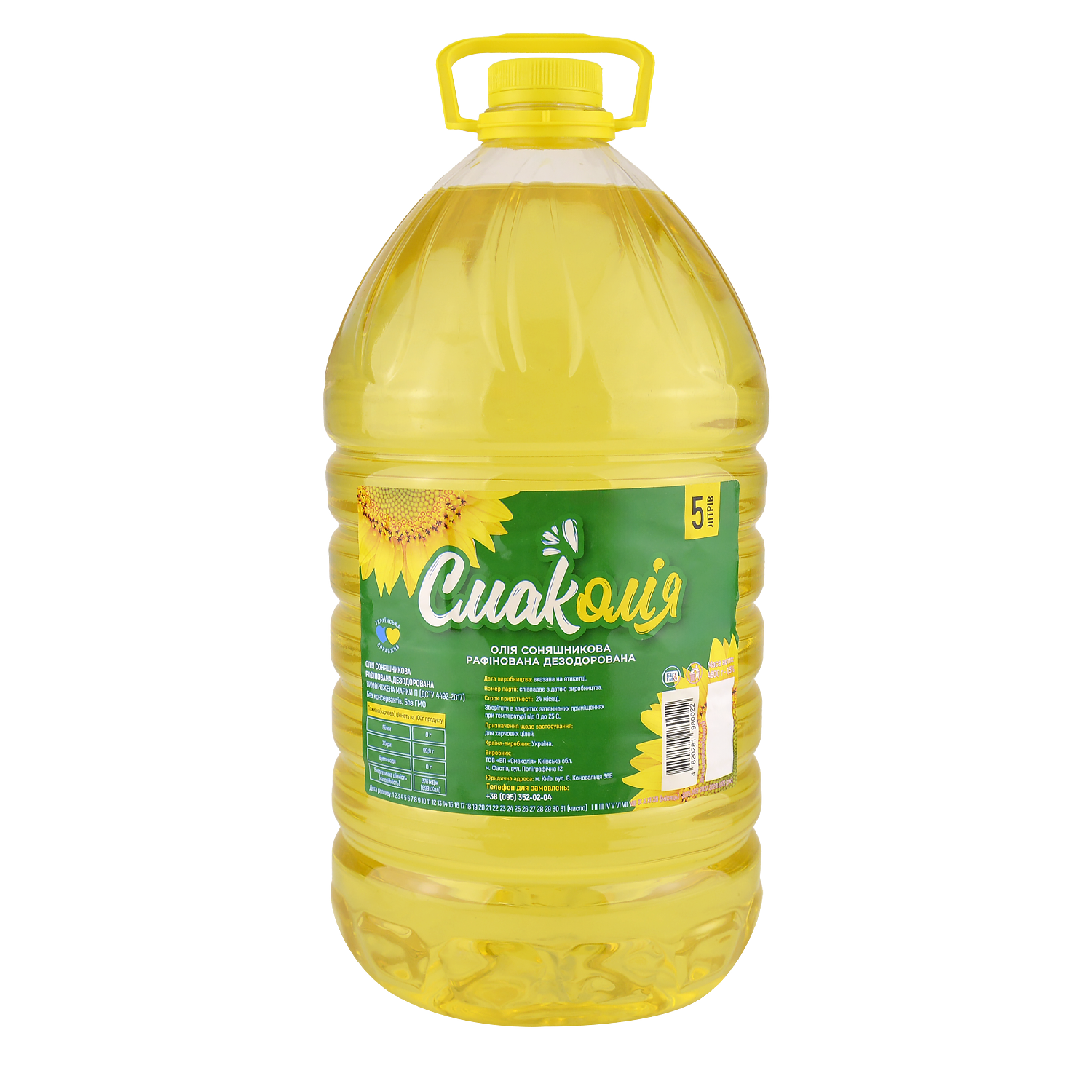 Купити недорого олію соняшникову рафіновану Смаколія 5 л можна з доставкою по всій Україні, а також переглянути, забрати чи оформити замовлення у наших шоурумах у Києві, Одесі та Рівному.