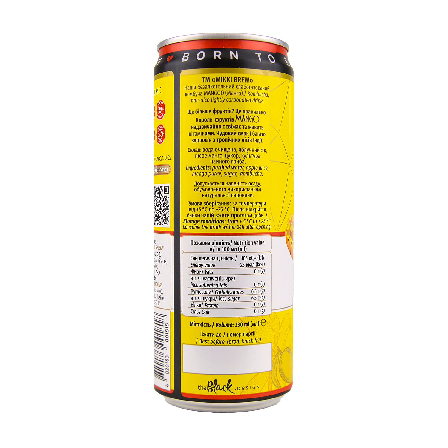 Напій безалкогольний Комбуча Mikki Brew Mangoo 330 мл