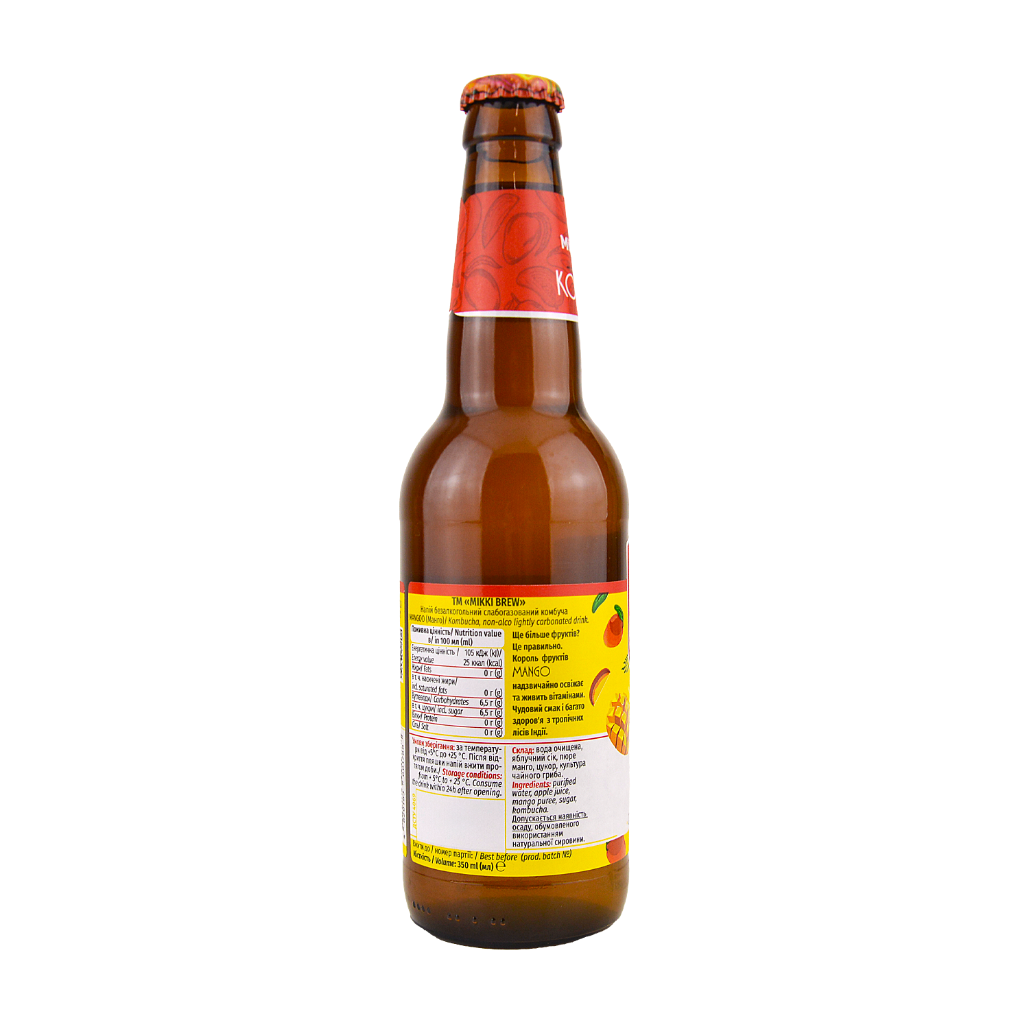 - Склад: вода очищена, яблучний сік, пюре манго, цукор, культура чайного гриба.