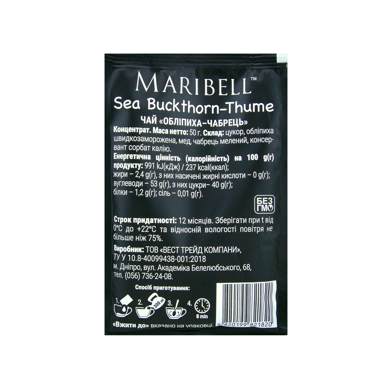 - Склад: цукор, обліпиха швидкозаморожена, мед, чебрець мелений, консервант сорбат калію.