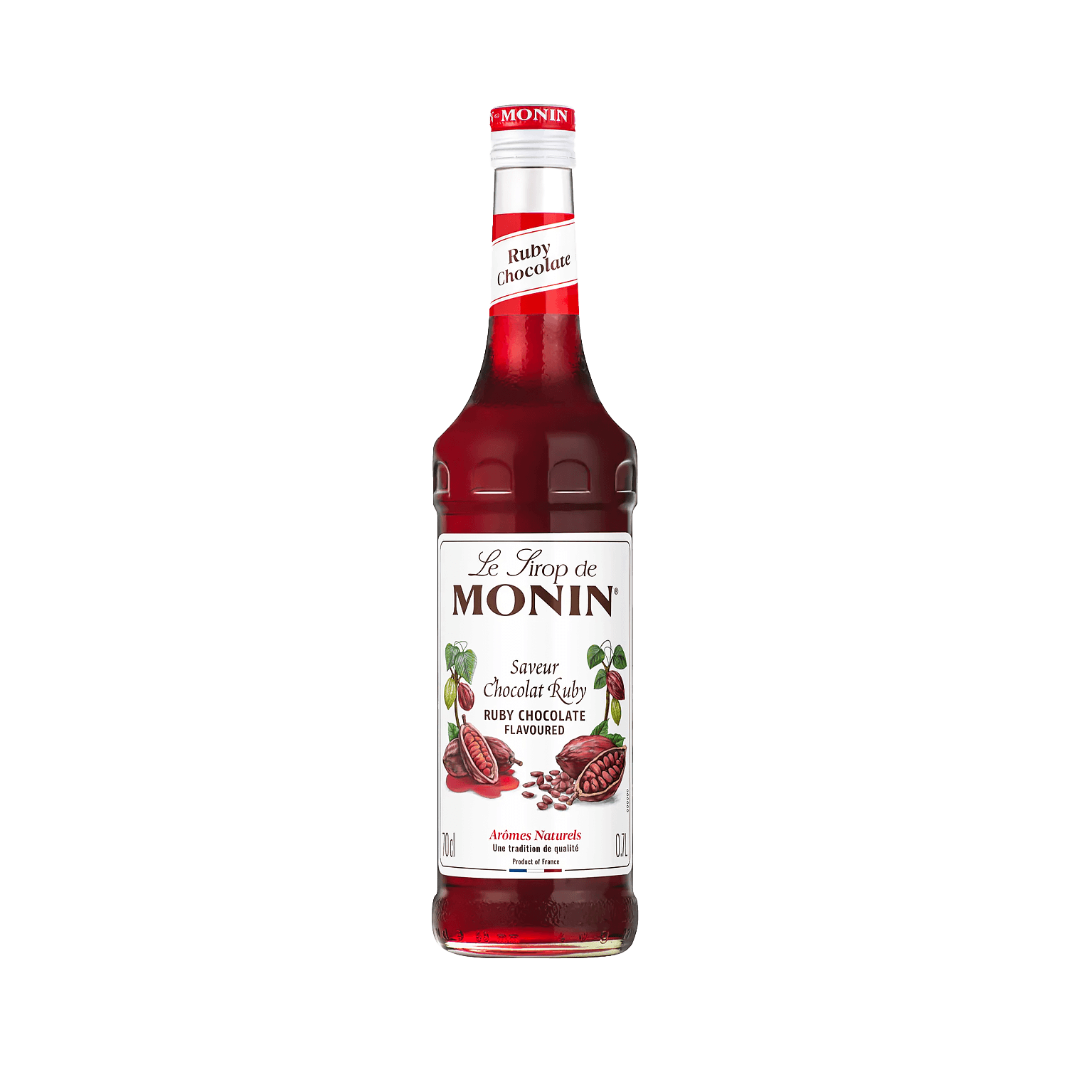 Сироп MONIN Рубіновий шоколад 0,7 л — це оригінальний десертний сироп із насиченим шоколадним смаком та легкими фруктово-ягідними нотами. Його аромат нагадує рубіновий шоколад — особливий вид шоколаду з ніжною кислинкою та м’якою солодкістю. Завдяки яскравому кольору сироп додає напоям і десертам ефектного вигляду та допомагає створювати цікаві авторські рецепти.