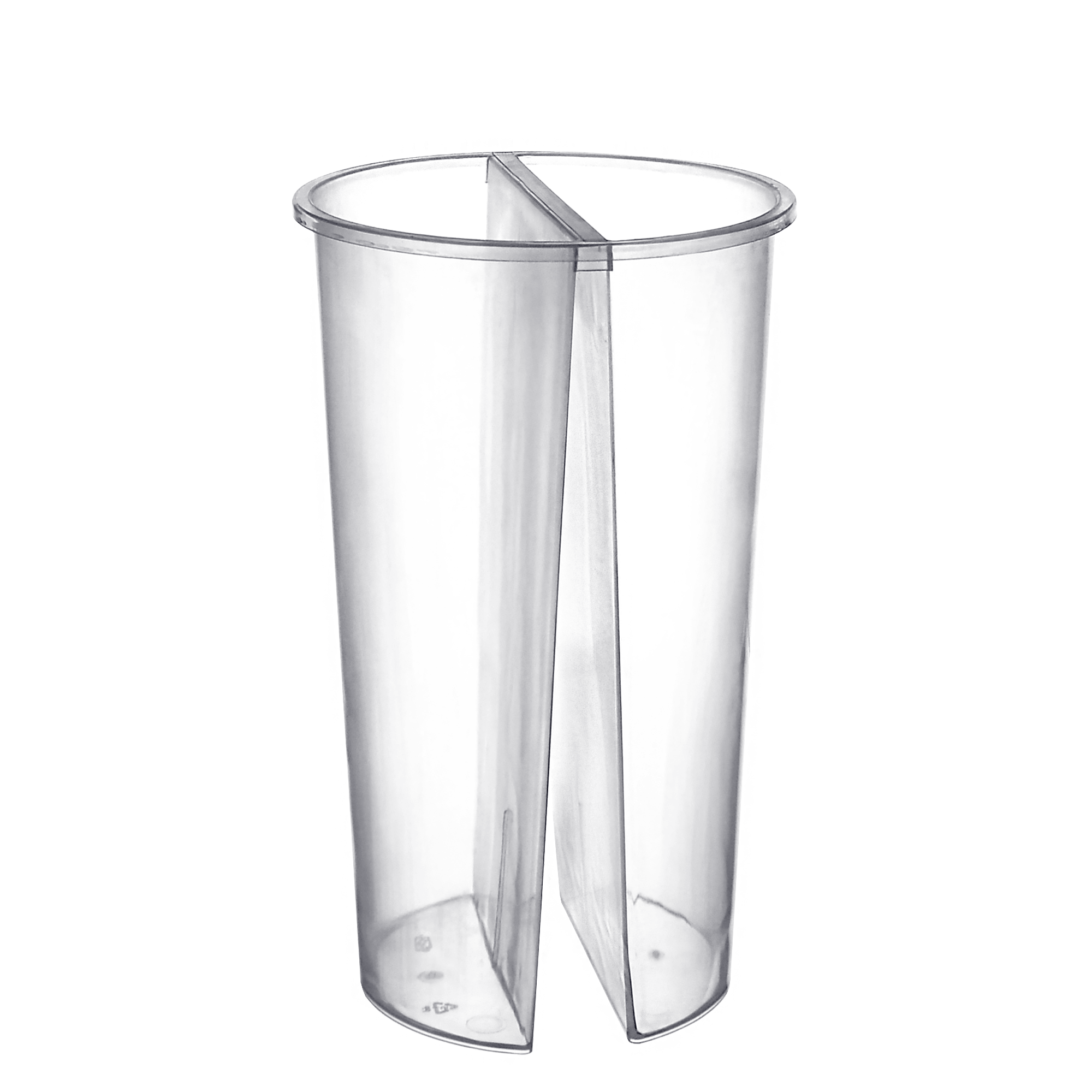 Стакани SPLIT CUP термостійкі 700 мл — це нестандартне рішення для подачі двох напоїв в одному стакані одночасно. Завдяки внутрішній перегородці стакан поділений на дві окремі секції, що дозволяє поєднувати різні смаки або напої без їх змішування. Такий формат одразу привертає увагу та створює вау-ефект під час подачі.