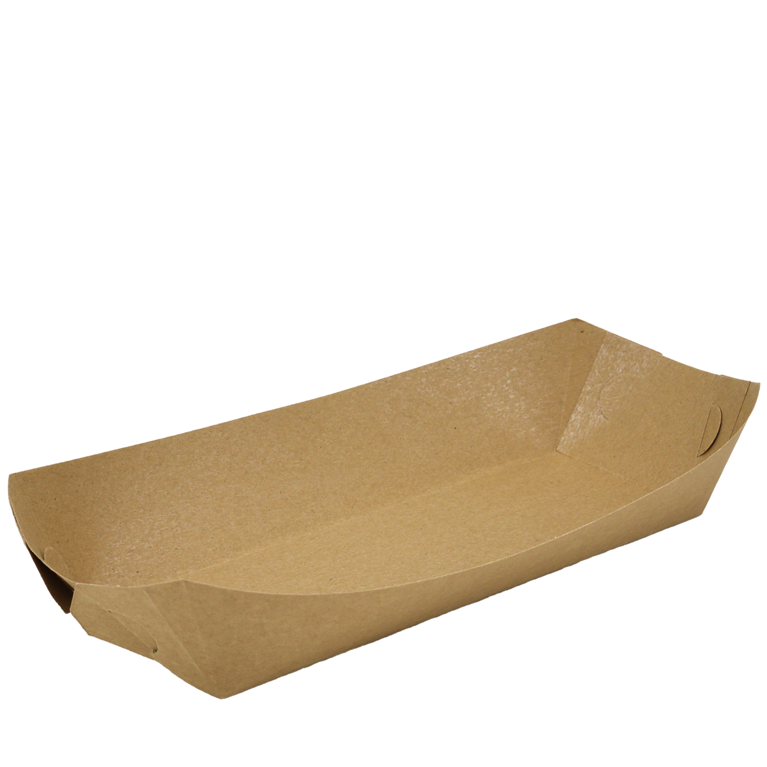 Крафтова тарілка-човник розміром 270х110х47 мм — це зручне рішення для подачі страв на виніс або швидкого обслуговування на фудкорті, фестивалі чи у кафе. Завдяки внутрішній ламінації вона більш стійка до вологи та жиру, що робить її практичним вибором для подачі гарячих та холодних страв.