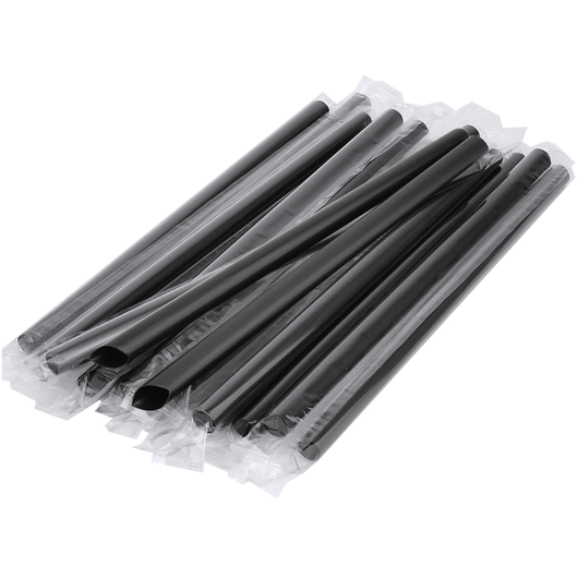 Трубочка для коктейлів в індивідуальній упаковці BUBBLE TEA Чорна 210х10 мм 200 шт