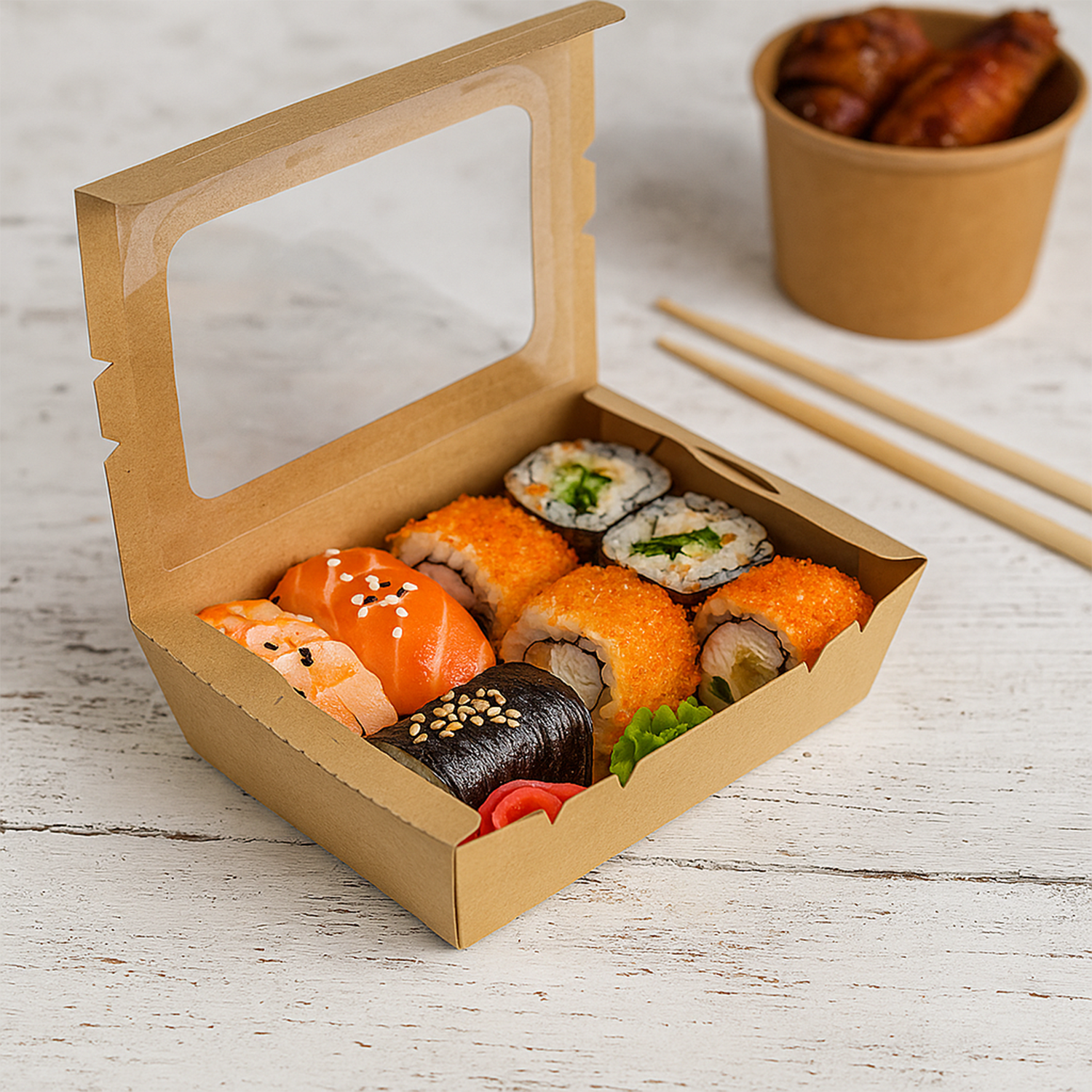 Упаковка крафт з вікном 200х135х50 мм 1200 мл 50шт